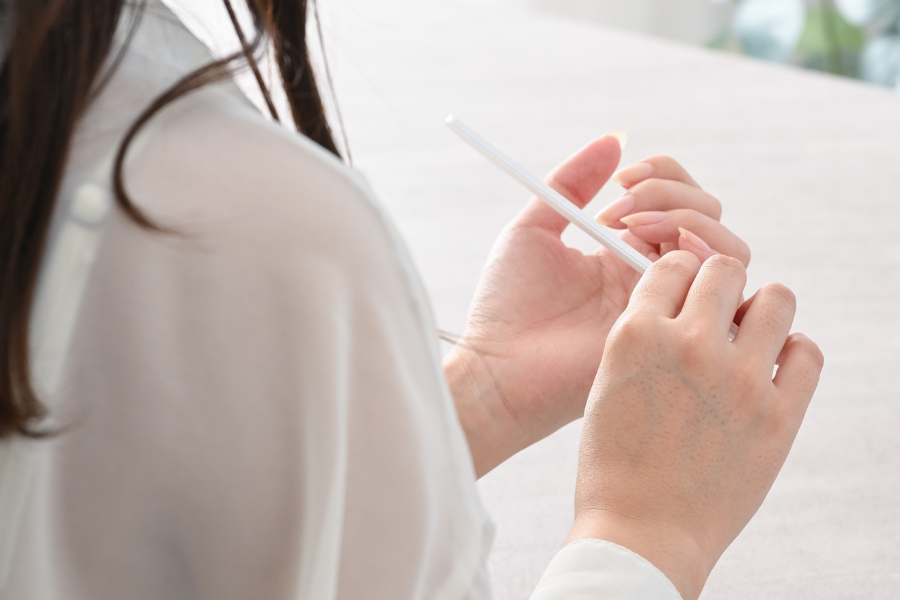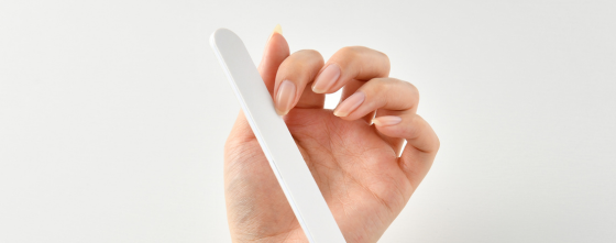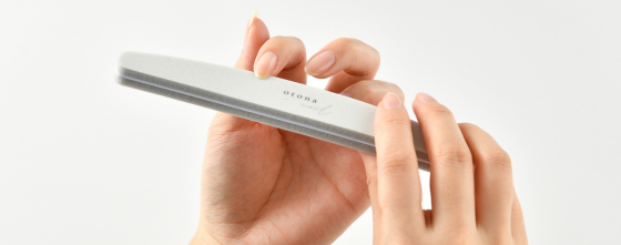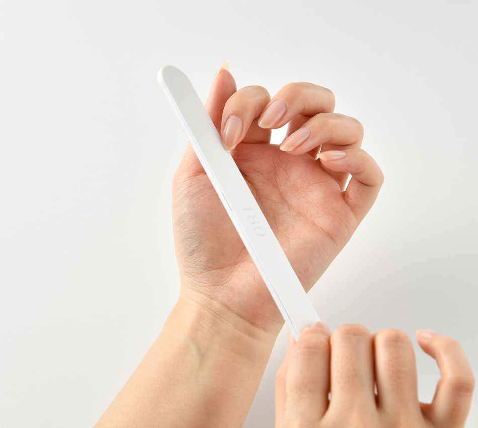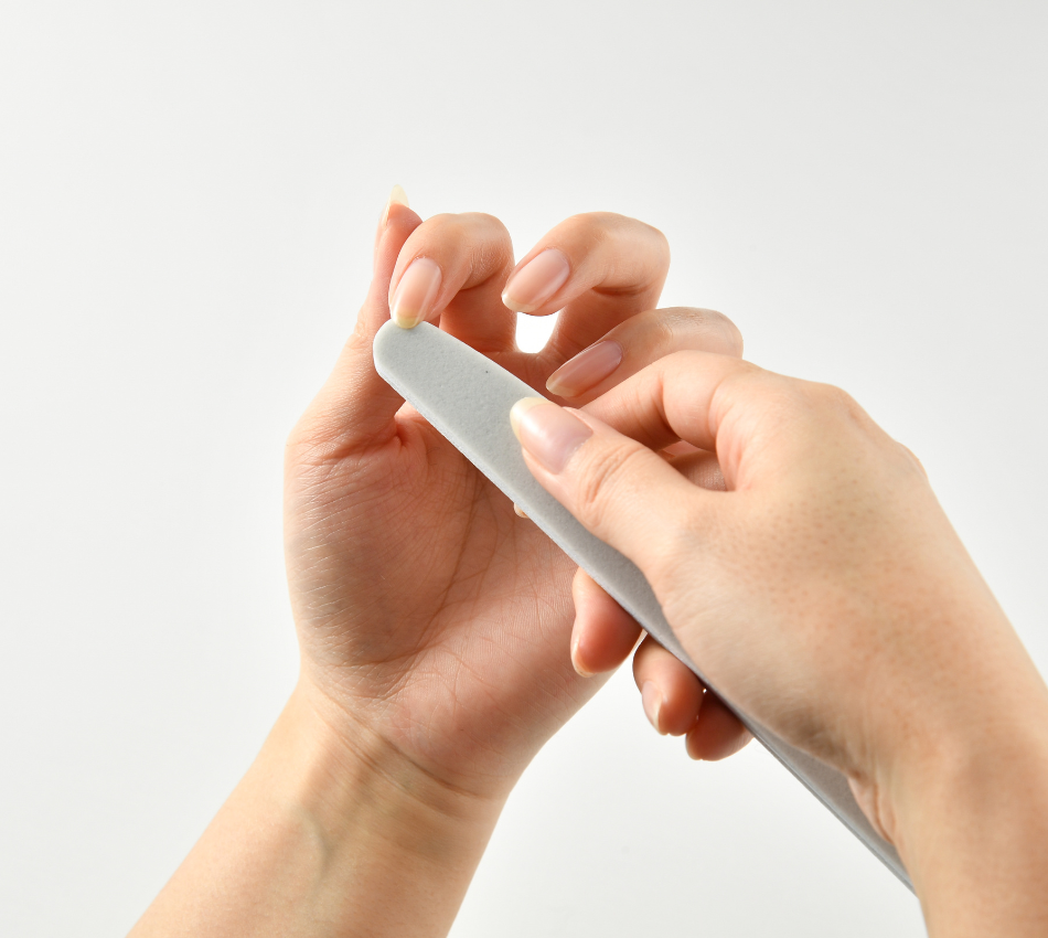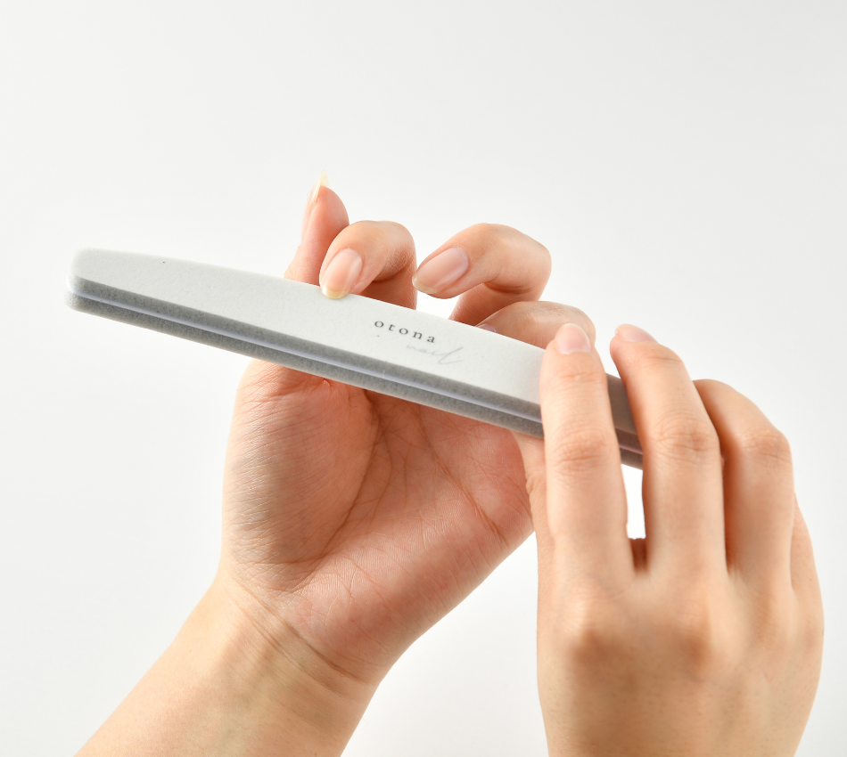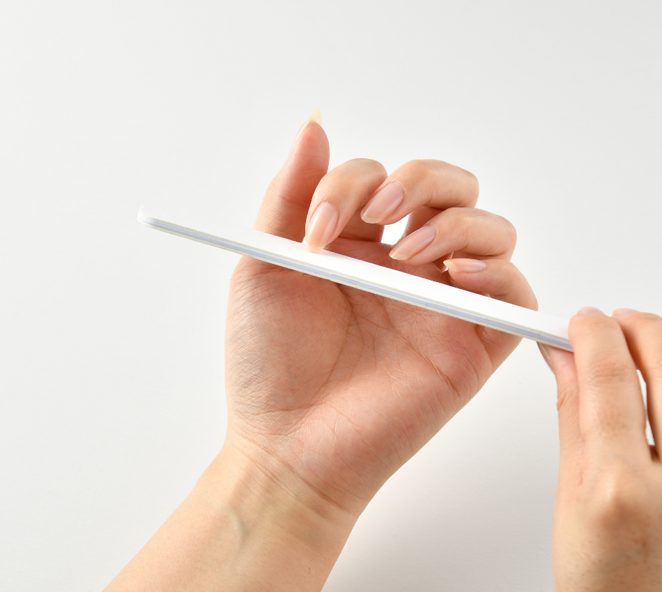 ネイルファイルを爪に当て、一方向にスライドしなが